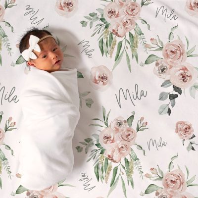 Pink Hot Air Balloons Personalized Baby Girl Blanket