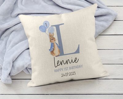 Rabbit & Balloons Baby First Birthday Personalised Cushion