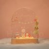 This night light comes with an LED light so you can use it immediately. It also comes with laser engraving option in wooden base to add your message to this lamp.