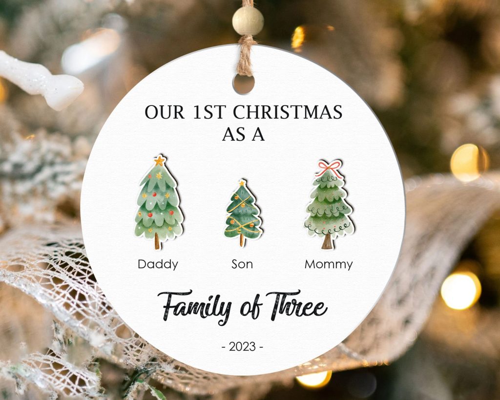 1. Each family member's name + christmas tree + details (big/small/paw).
