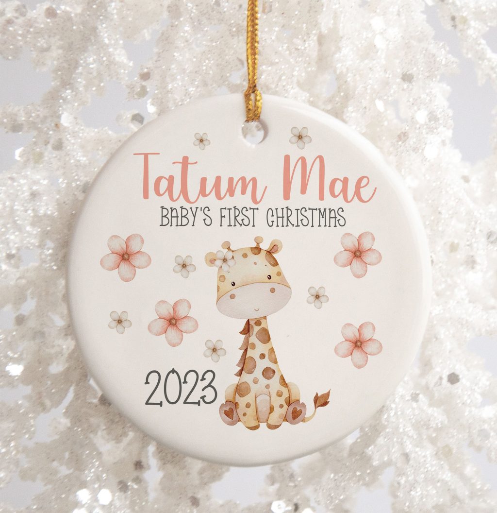 Flower Giraffe Custom Ceramic Ornament