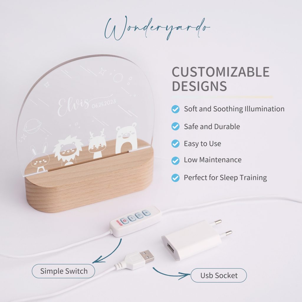 Personalized The Night Lamp is a cute and charming table lamp designed for children’s rooms. Our Night Light creates a delightful and magical atmosphere, making it the perfect gift for babies and toddlers.