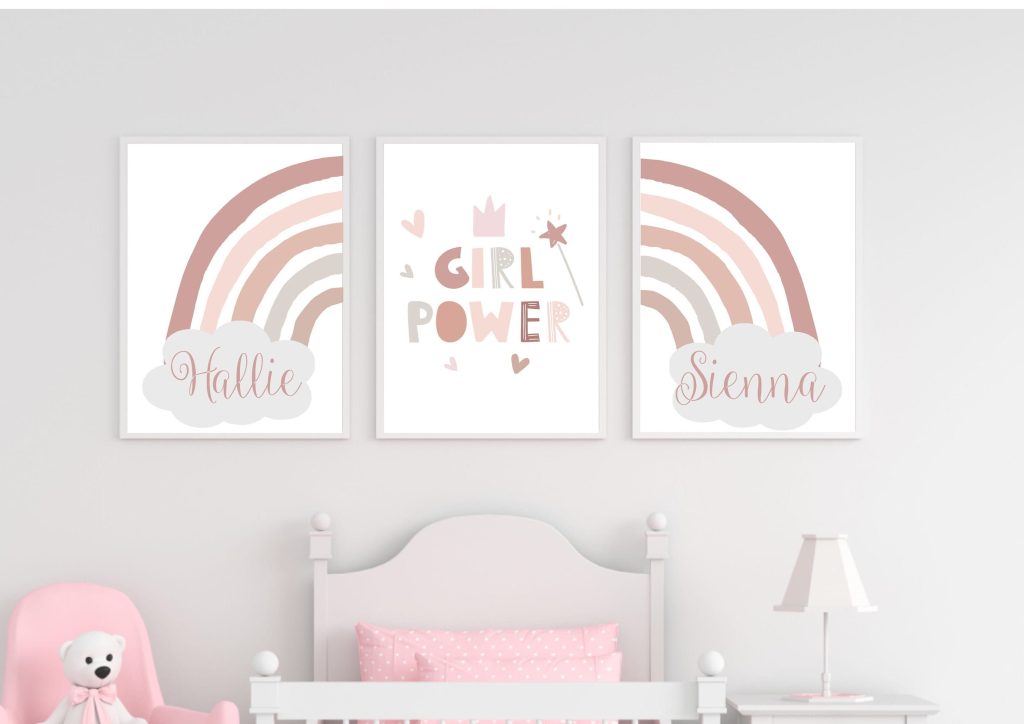 Set of 3 Girlpower Rainbow Custom Wall Art